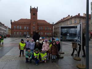 Pan Mateusz zabrał nas na ciekawy historyczny spacer – mogliśmy obejrzeć tablice rozmieszczone na ulicach miasta poświęcone Narodowemu Dniu Pamięci Żołnierzy Wyklętych, który obchodzony jest 1.03.