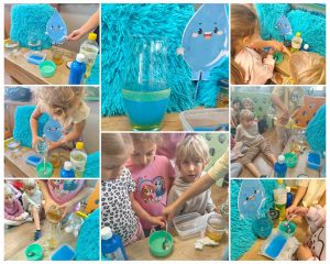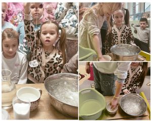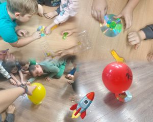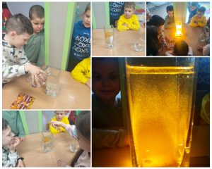 Dzieci chętnie angażują się w działania badawcze, wykazują zainteresowanie zjawiskami przyrodniczymi oraz aktywnie uczestniczą w zajęciach.